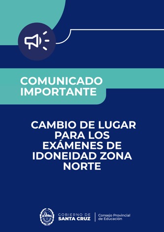 Comunicado: Cambio de lugar para los exámenes de idoneidad zona norte El Consejo Provincial de Educación, a través de las Juntas de Clasificación Inicial y Especial, Primaria, Secundaria y Técnico…