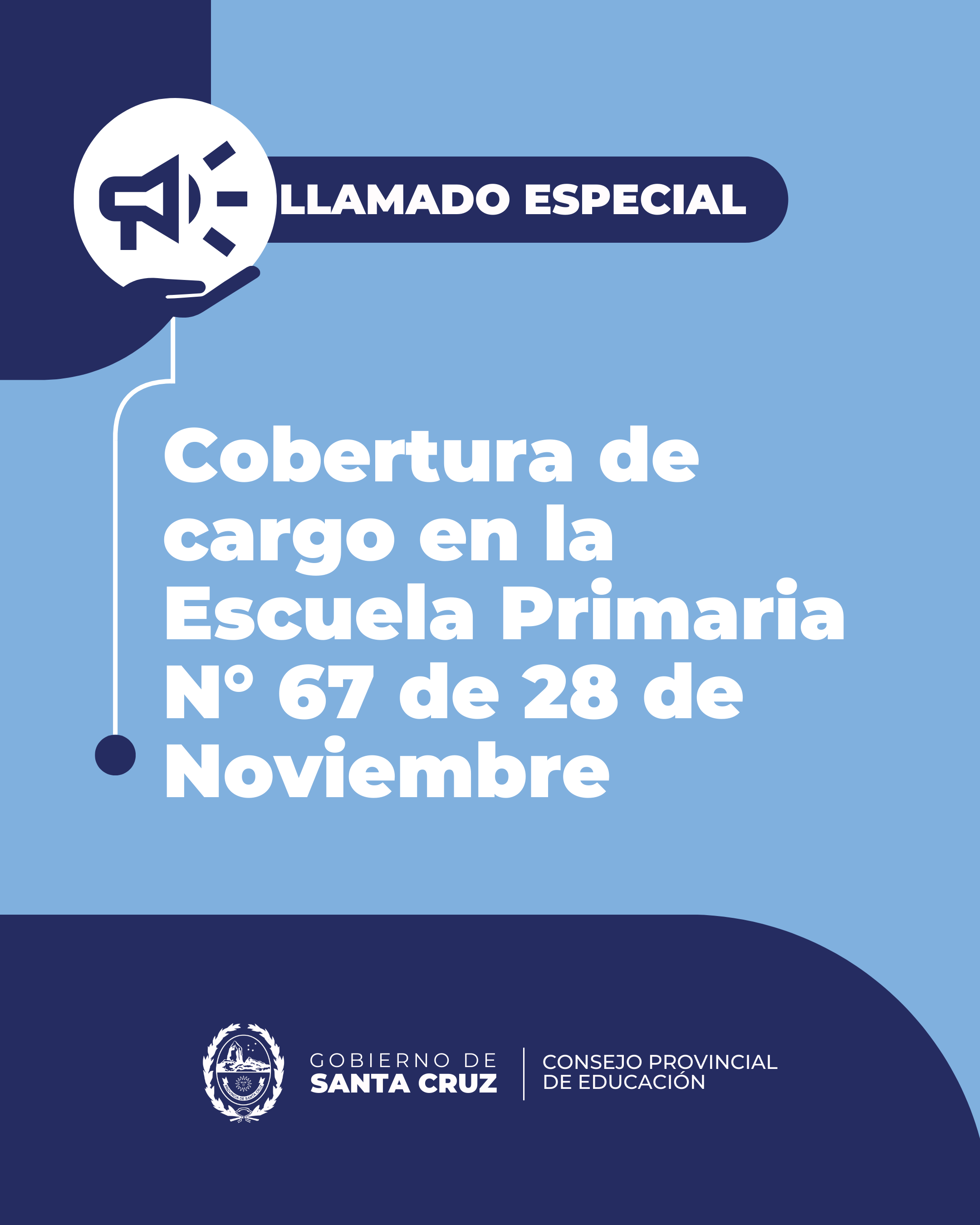 Llamado Especial a cubrir cargo en la Escuela Primaria N° 67 de 28 de Noviembre El Consejo Provincial de Educación, a través Junta de Clasificación Primaria, informa que se encuentra…