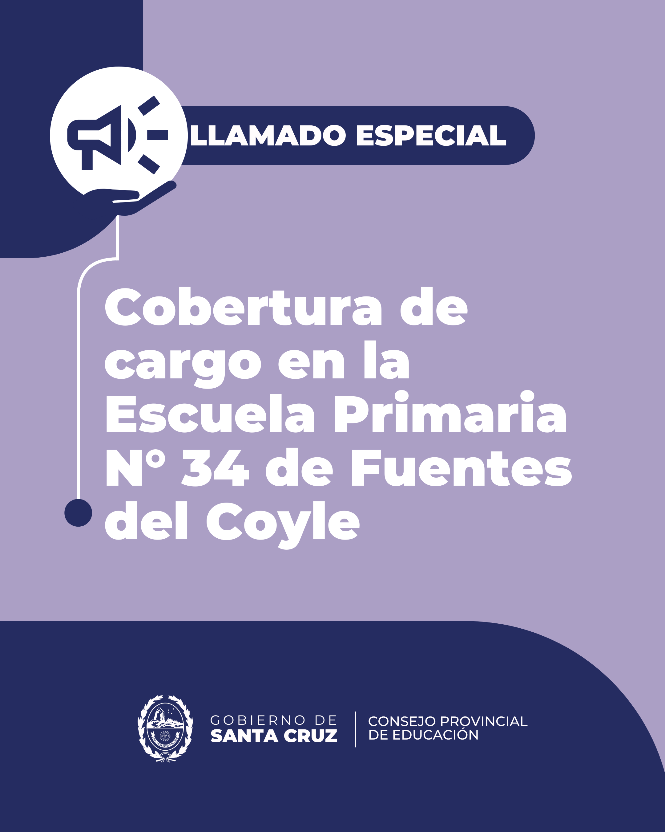 Llamado Especial para cubrir cargo en la Escuela Provincial Primaria N° 34 de Fuentes del Coyle El Consejo Provincial de Educación, a través la Junta de Clasificación Primaria, se encuentra…