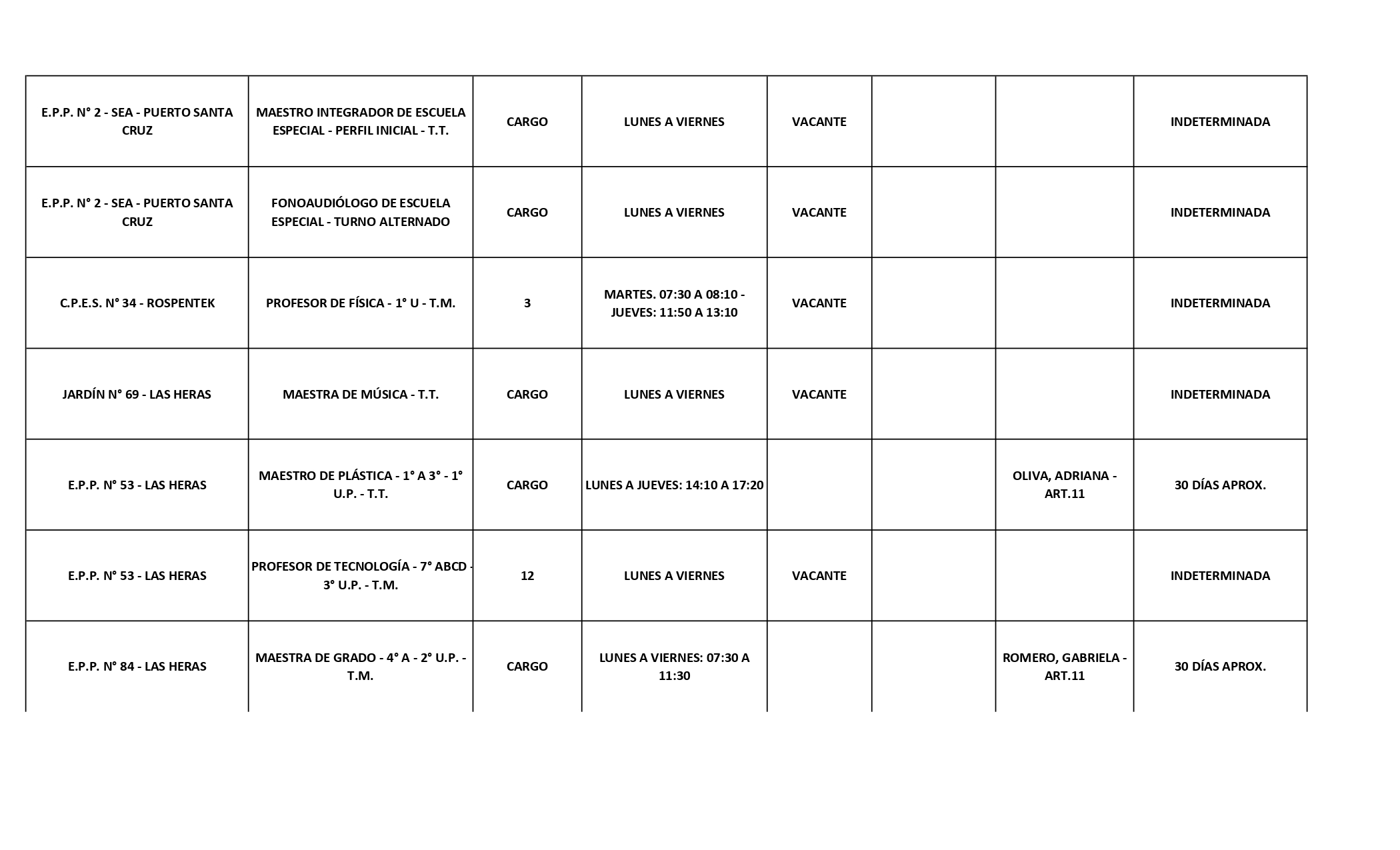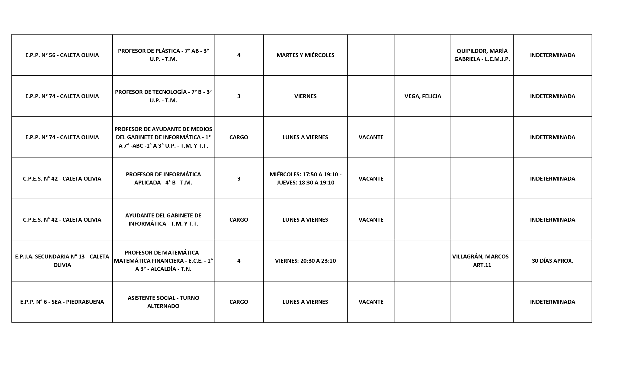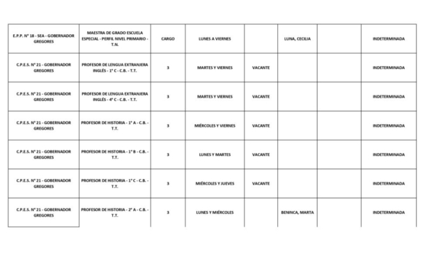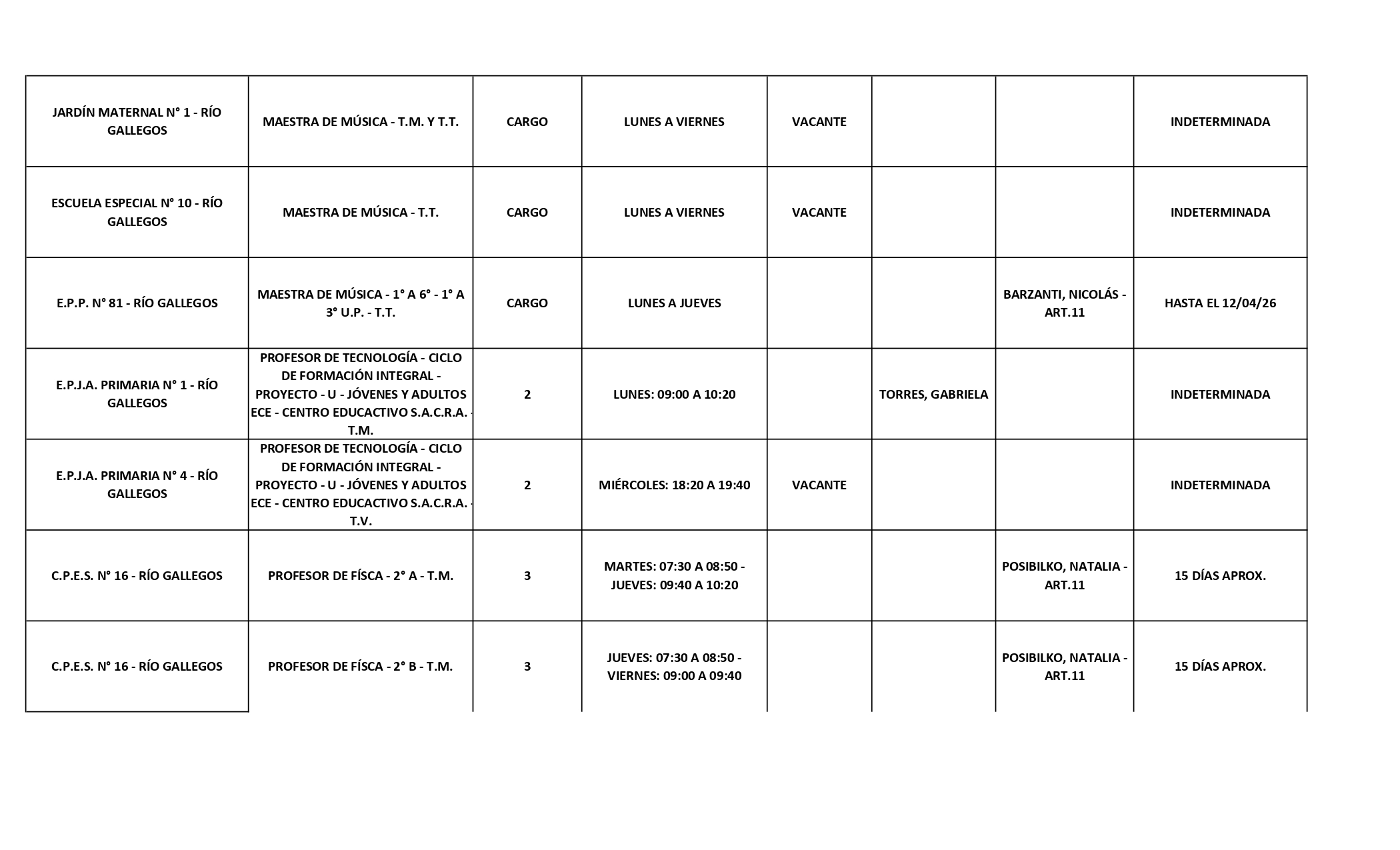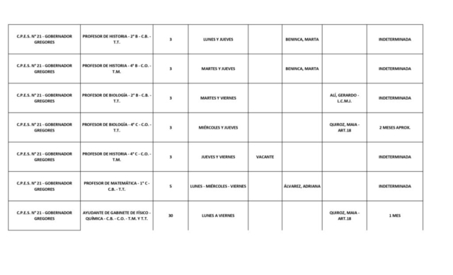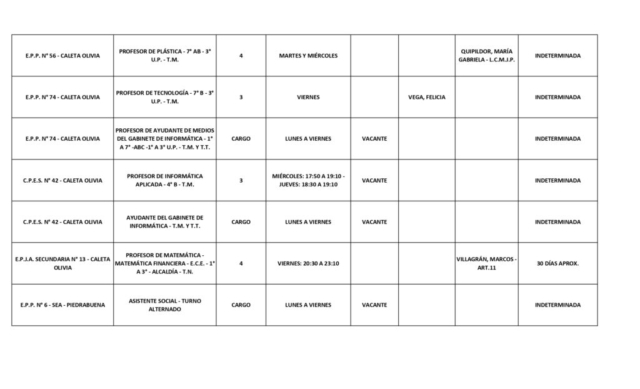 01/04/2026 | El Consejo Provincial de Educación, a través de las Comisiones de Ofrecimientos, informa que se encuentran disponibles los listados para acceder a los cargos y horas cátedra en establecimientos de diferentes localidades. Los mismos se realizarán de manera presencial.