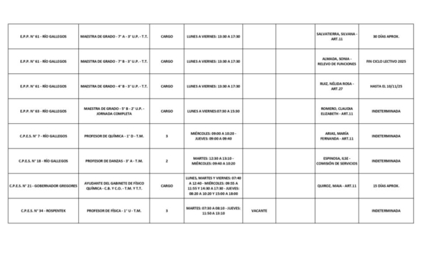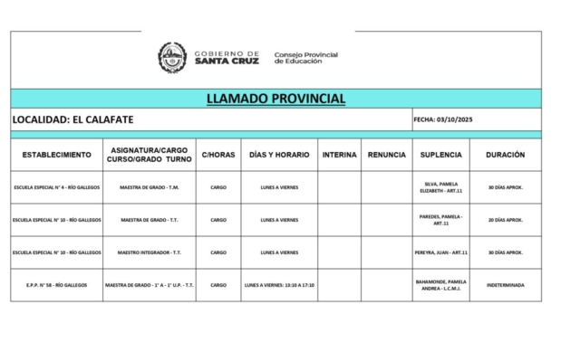 02/10/2025 | El Consejo Provincial de Educación, a través de las Comisiones de Ofrecimientos, informa que se encuentran disponibles los listados para acceder a los cargos y horas cátedra en establecimientos de diferentes localidades. Los mismos se realizarán de manera presencial.