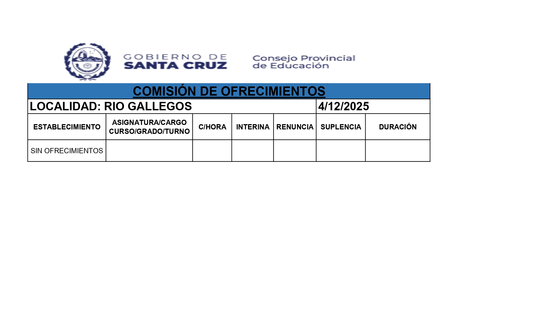 04/12/2025 | El Consejo Provincial de Educación, a través de las Comisiones de Ofrecimientos, informa que se encuentran disponibles los listados para acceder a los cargos y horas cátedra en establecimientos de diferentes localidades. Los mismos se realizarán de manera presencial.