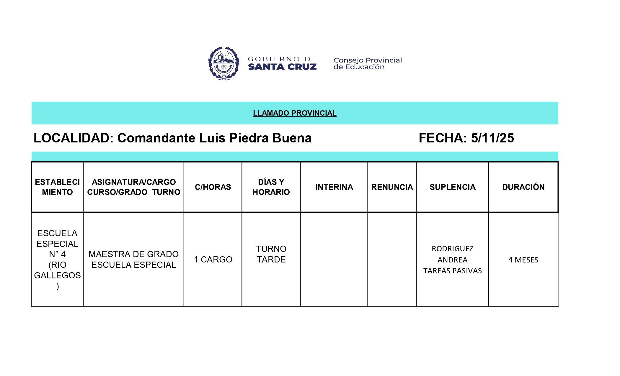 05/11/2025 | El Consejo Provincial de Educación, a través de las Comisiones de Ofrecimientos, informa que se encuentran disponibles los listados para acceder a los cargos y horas cátedra en establecimientos de diferentes localidades. Los mismos se realizarán de manera presencial.