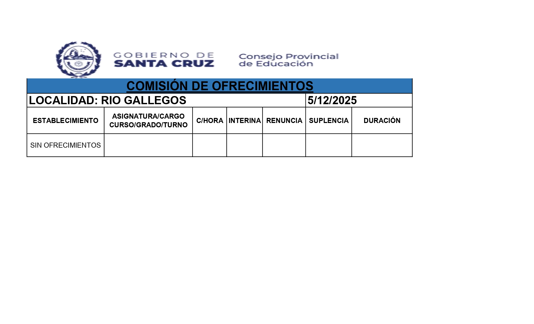 05/12/2025 | El Consejo Provincial de Educación, a través de las Comisiones de Ofrecimientos, informa que se encuentran disponibles los listados para acceder a los cargos y horas cátedra en establecimientos de diferentes localidades. Los mismos se realizarán de manera presencial.