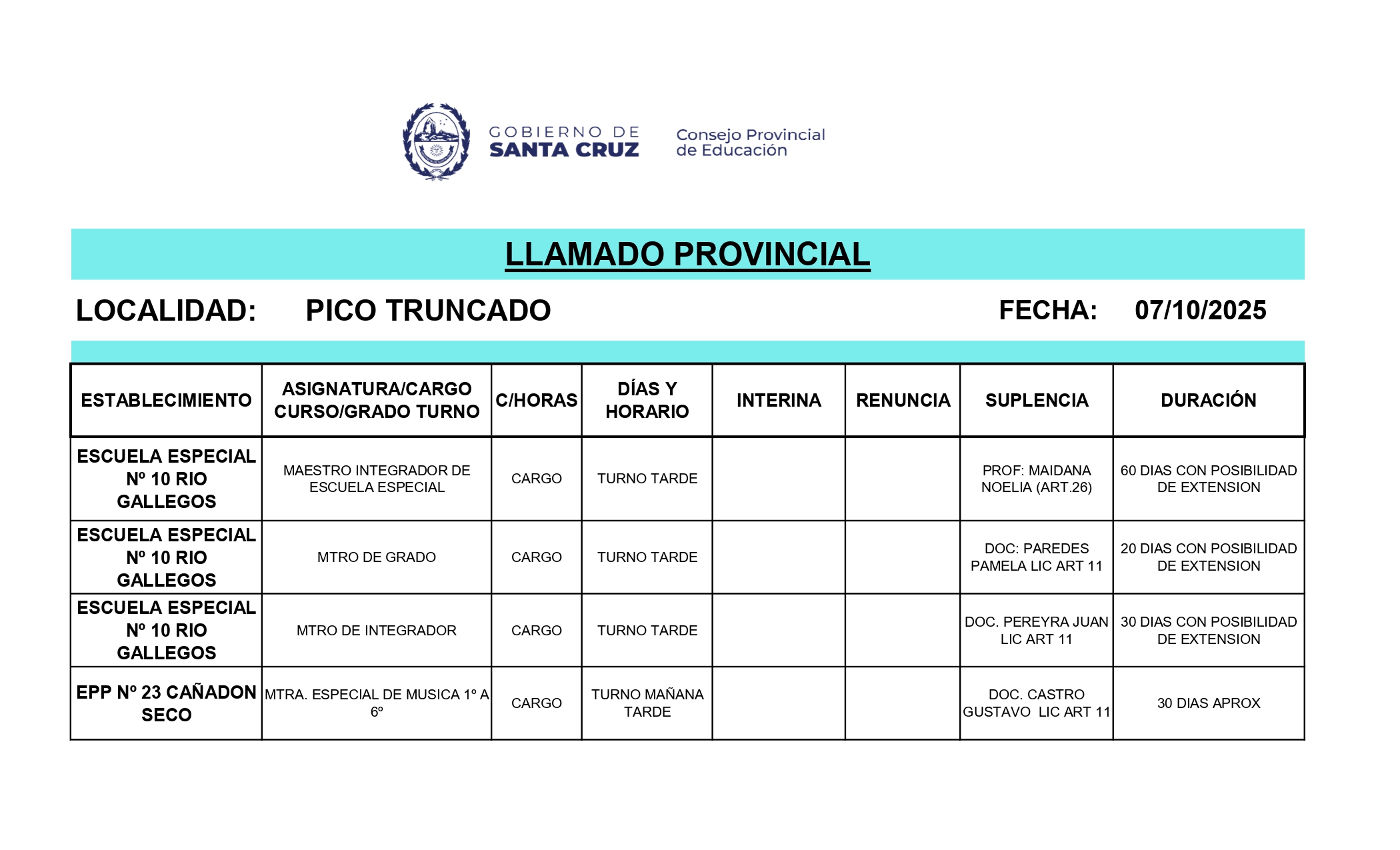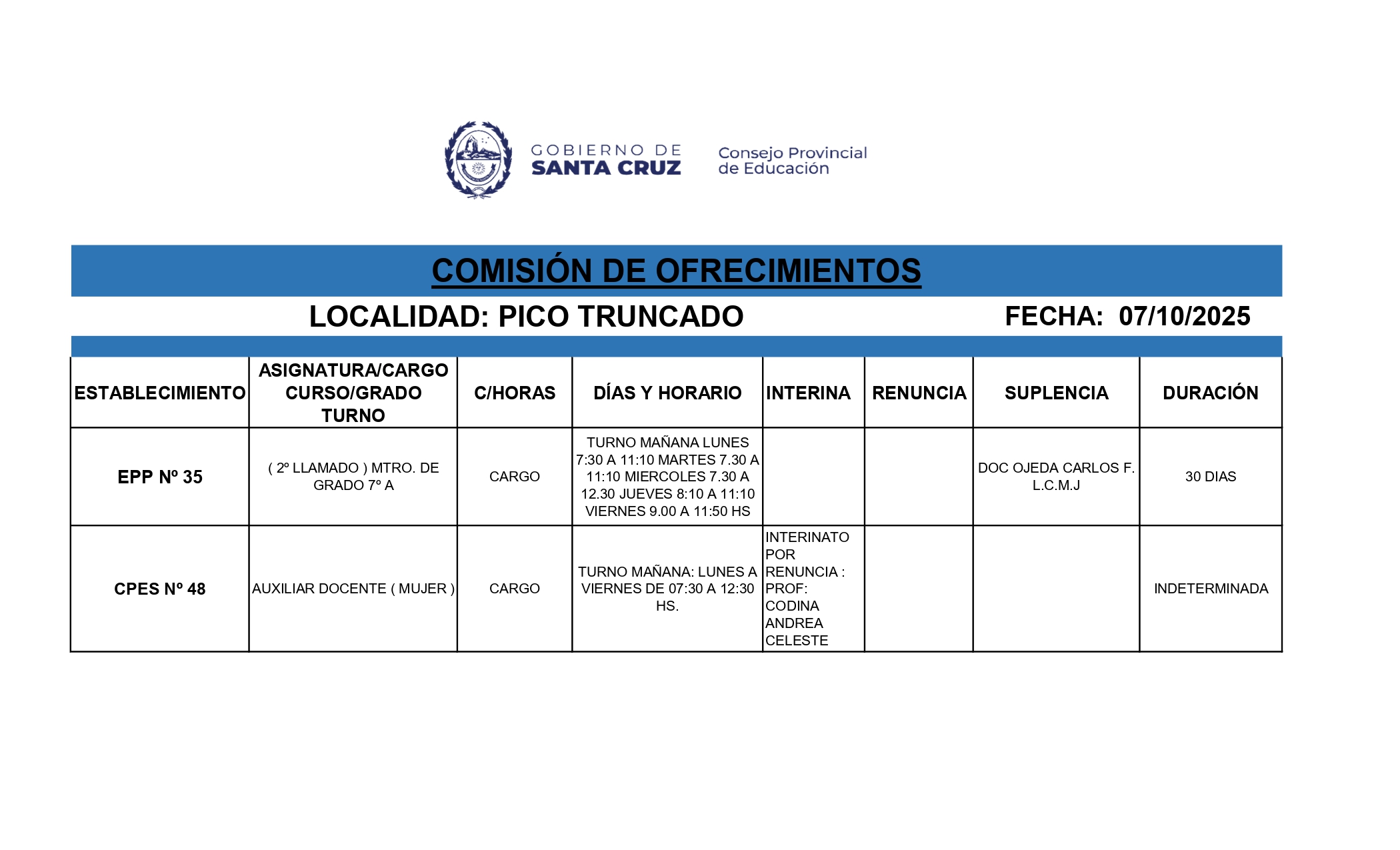 07/10/2025 | El Consejo Provincial de Educación, a través de las Comisiones de Ofrecimientos, informa que se encuentran disponibles los listados para acceder a los cargos y horas cátedra en establecimientos de diferentes localidades. Los mismos se realizarán de manera presencial.