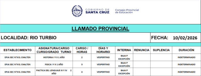 09/02/2026 | El Consejo Provincial de Educación, a través de las Comisiones de Ofrecimientos, informa que se encuentran disponibles los listados para acceder a los cargos y horas cátedra en establecimientos de diferentes localidades. Los mismos se realizarán de manera presencial.