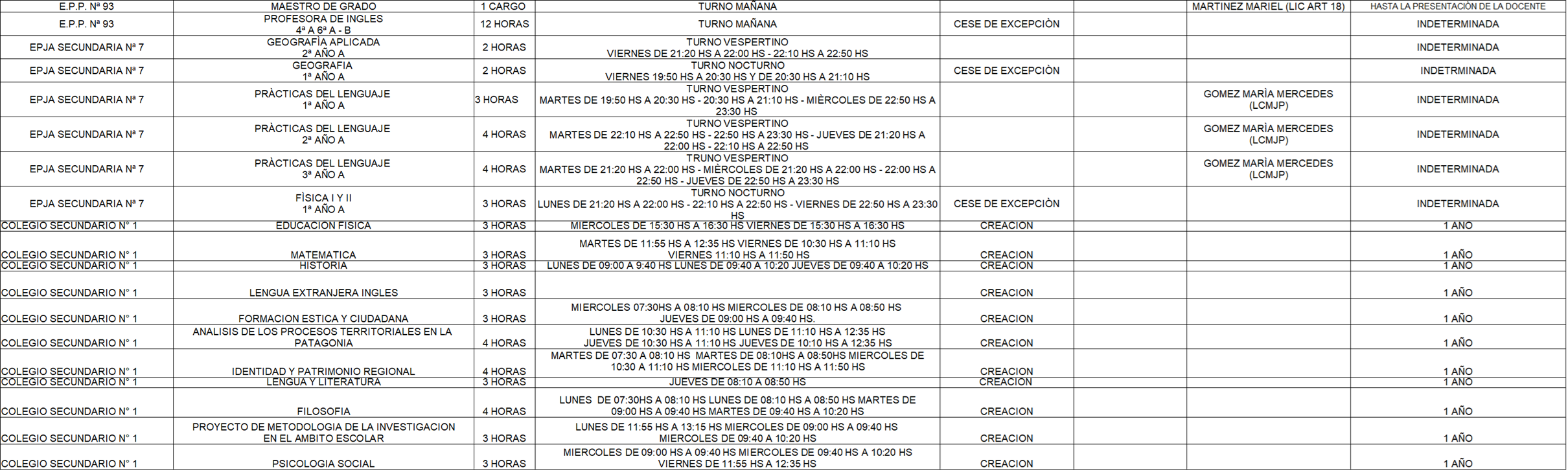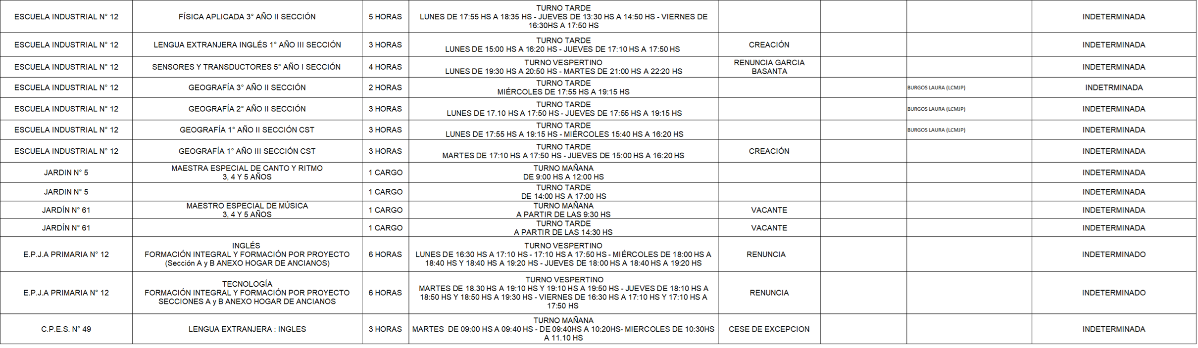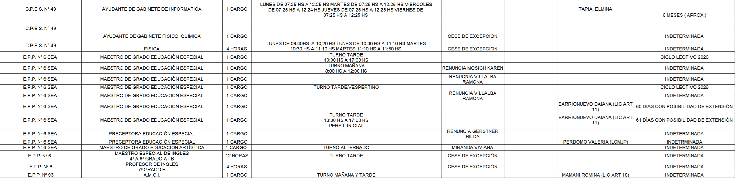 12/03/2026 | El Consejo Provincial de Educación, a través de las Comisiones de Ofrecimientos, informa que se encuentran disponibles los listados para acceder a los cargos y horas cátedra en establecimientos de diferentes localidades. Los mismos se realizarán de manera presencial.