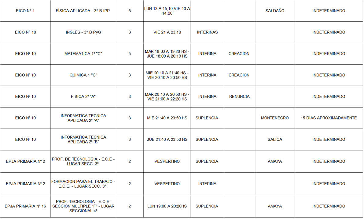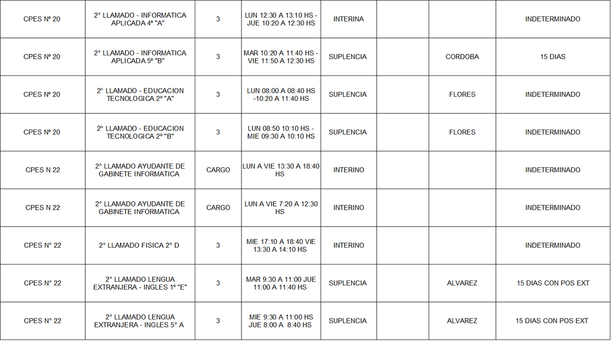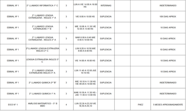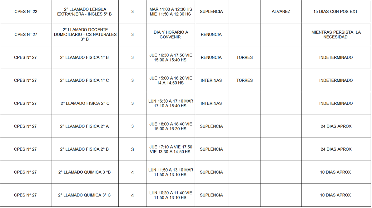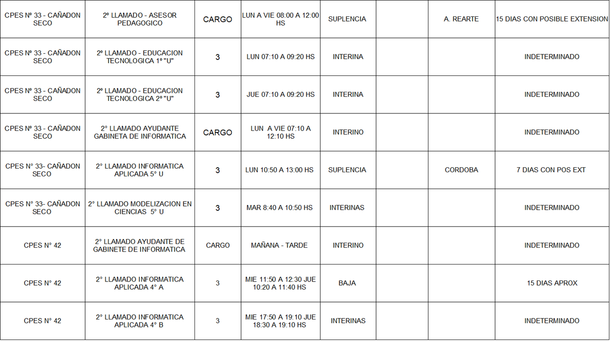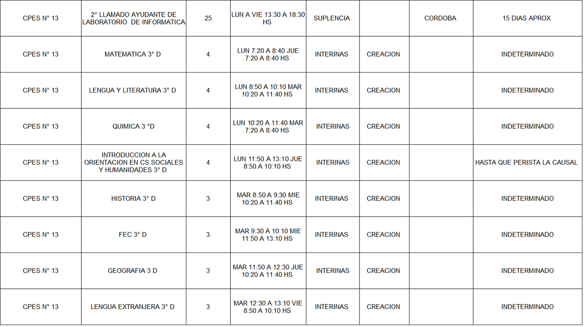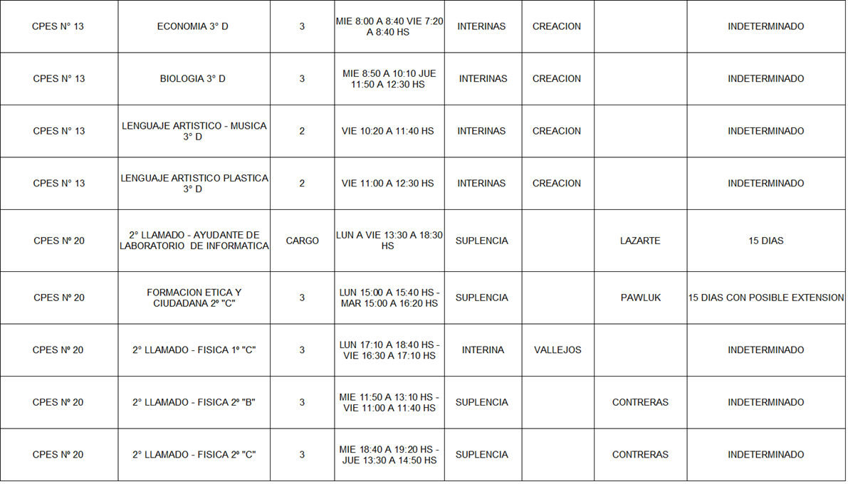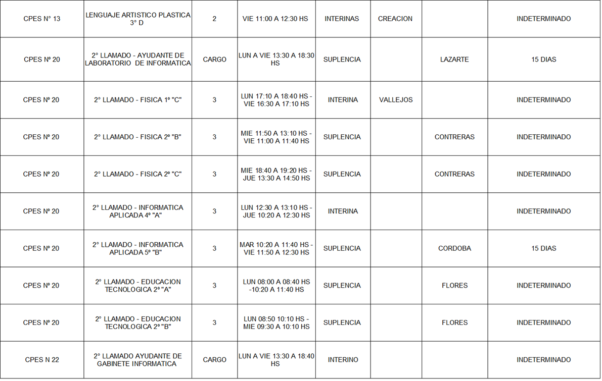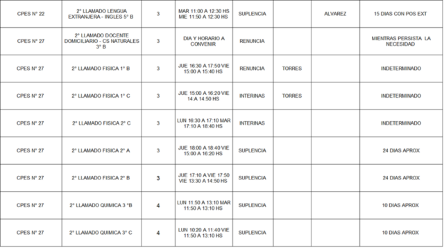 13/03/2026 | El Consejo Provincial de Educación, a través de las Comisiones de Ofrecimientos, informa que se encuentran disponibles los listados para acceder a los cargos y horas cátedra en establecimientos de diferentes localidades. Los mismos se realizarán de manera presencial.