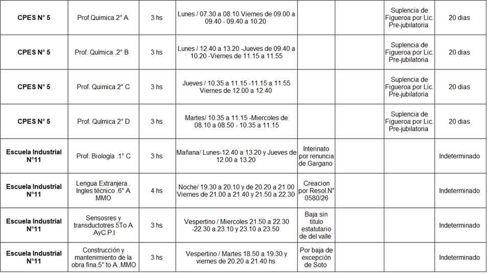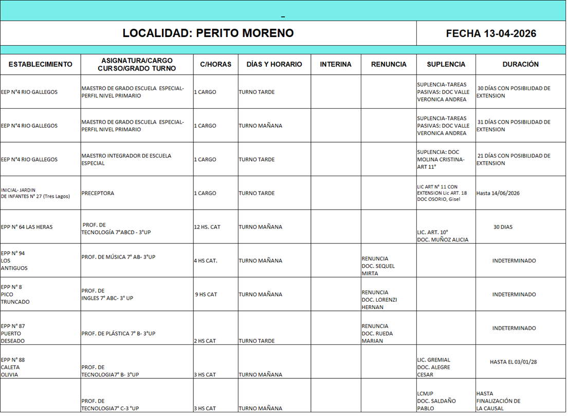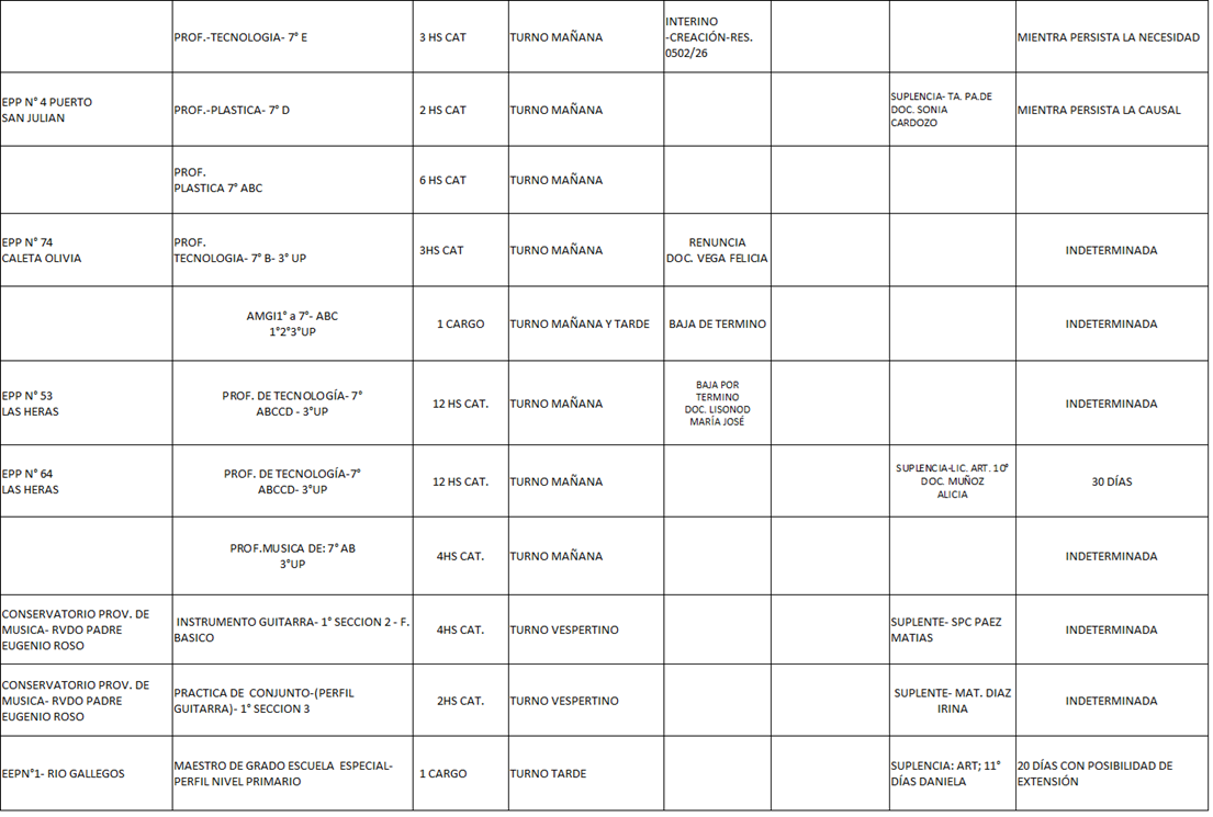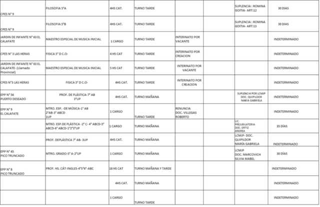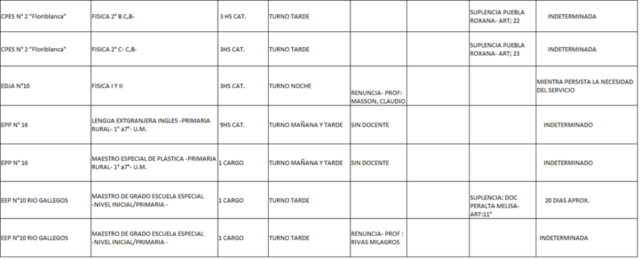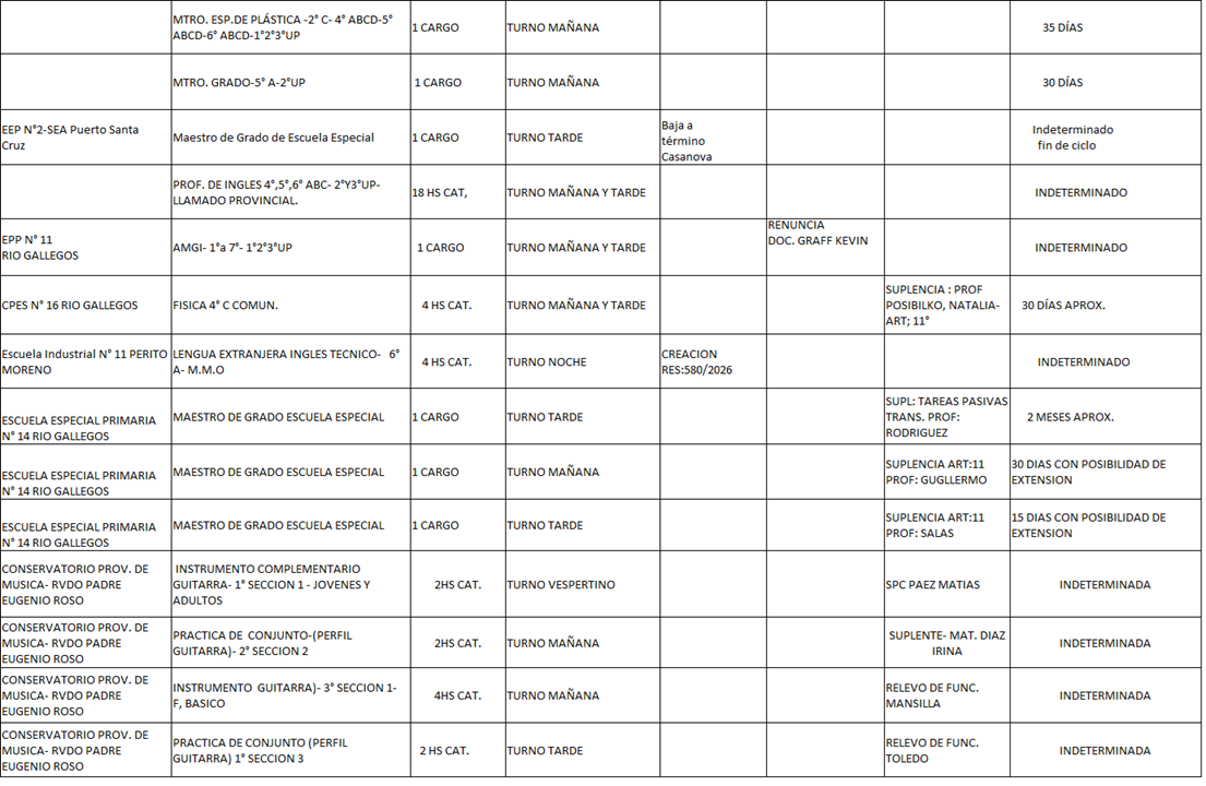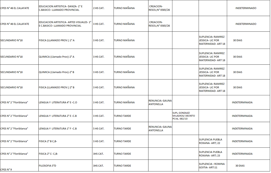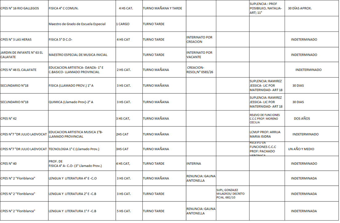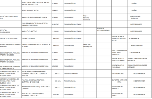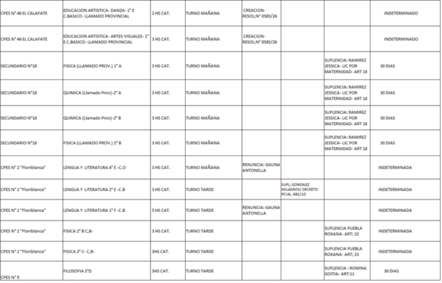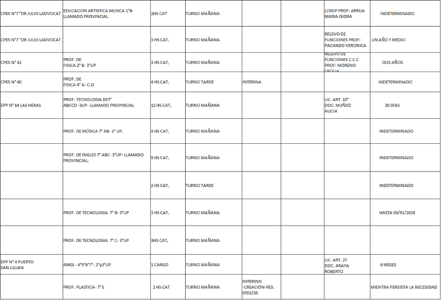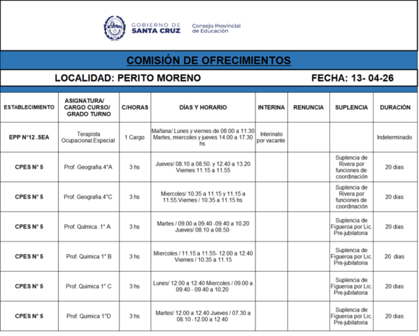 13/04/2026 | El Consejo Provincial de Educación, a través de las Comisiones de Ofrecimientos, informa que se encuentran disponibles los listados para acceder a los cargos y horas cátedra en establecimientos de diferentes localidades. Los mismos se realizarán de manera presencial.
