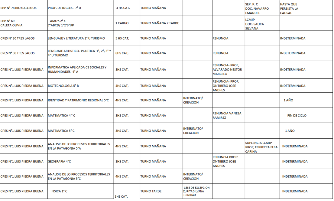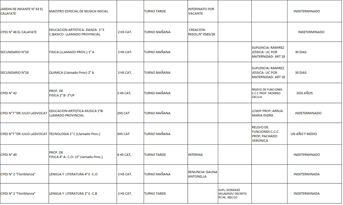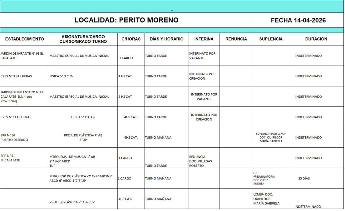 14/04/2026 | El Consejo Provincial de Educación, a través de las Comisiones de Ofrecimientos, informa que se encuentran disponibles los listados para acceder a los cargos y horas cátedra en establecimientos de diferentes localidades. Los mismos se realizarán de manera presencial.