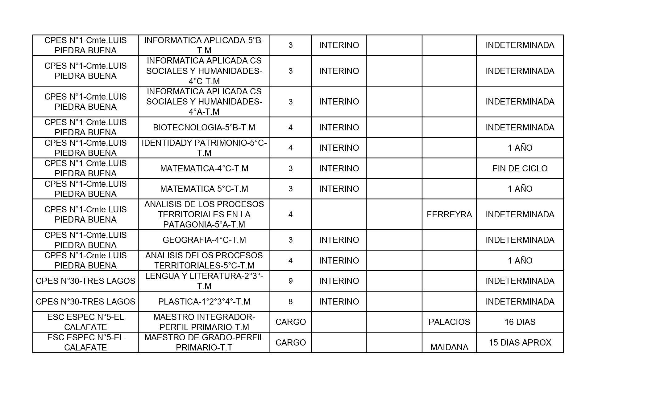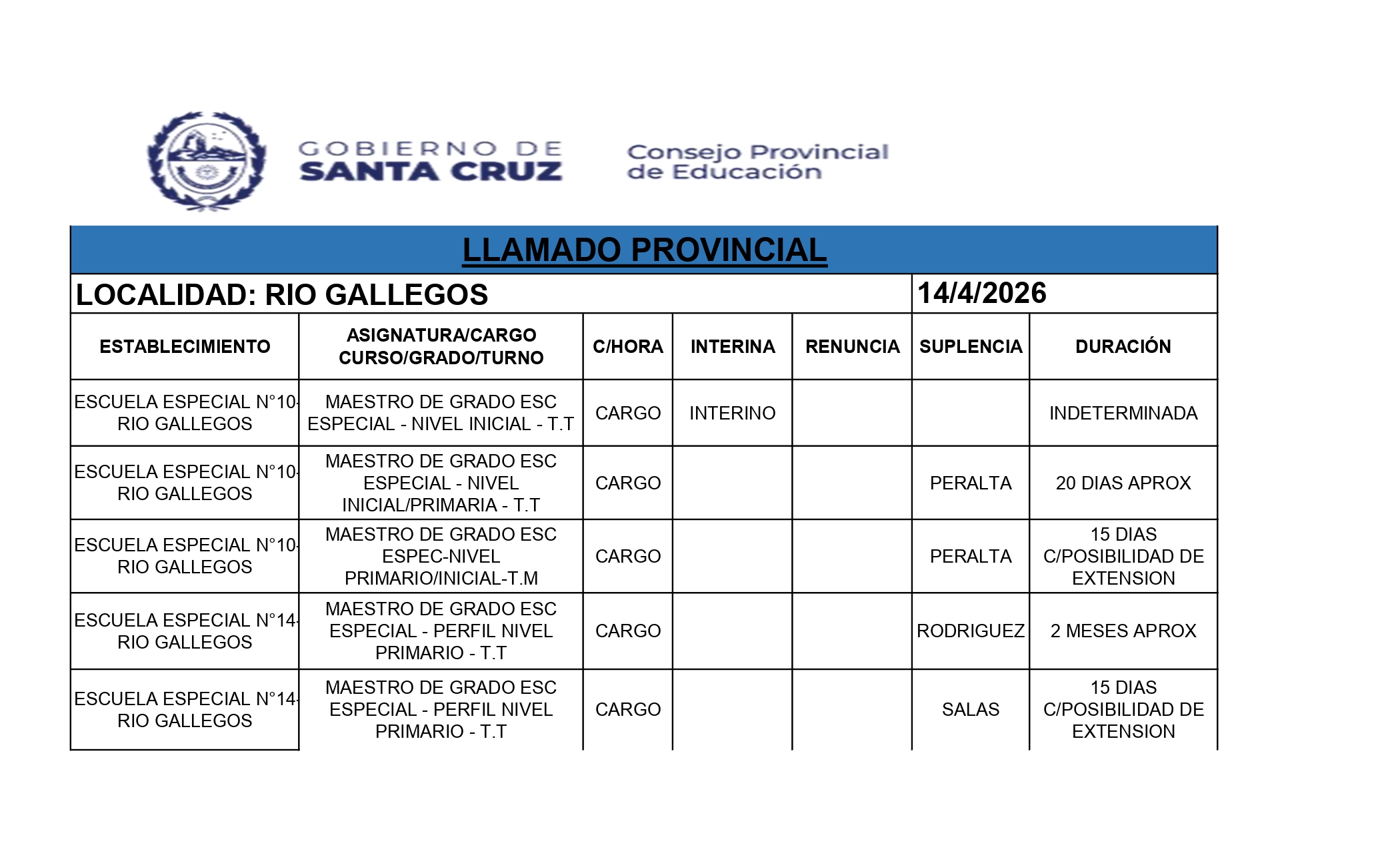 14/04/2026 | El Consejo Provincial de Educación, a través de las Comisiones de Ofrecimientos, informa que se encuentran disponibles los listados para acceder a los cargos y horas cátedra en establecimientos de diferentes localidades. Los mismos se realizarán de manera presencial.