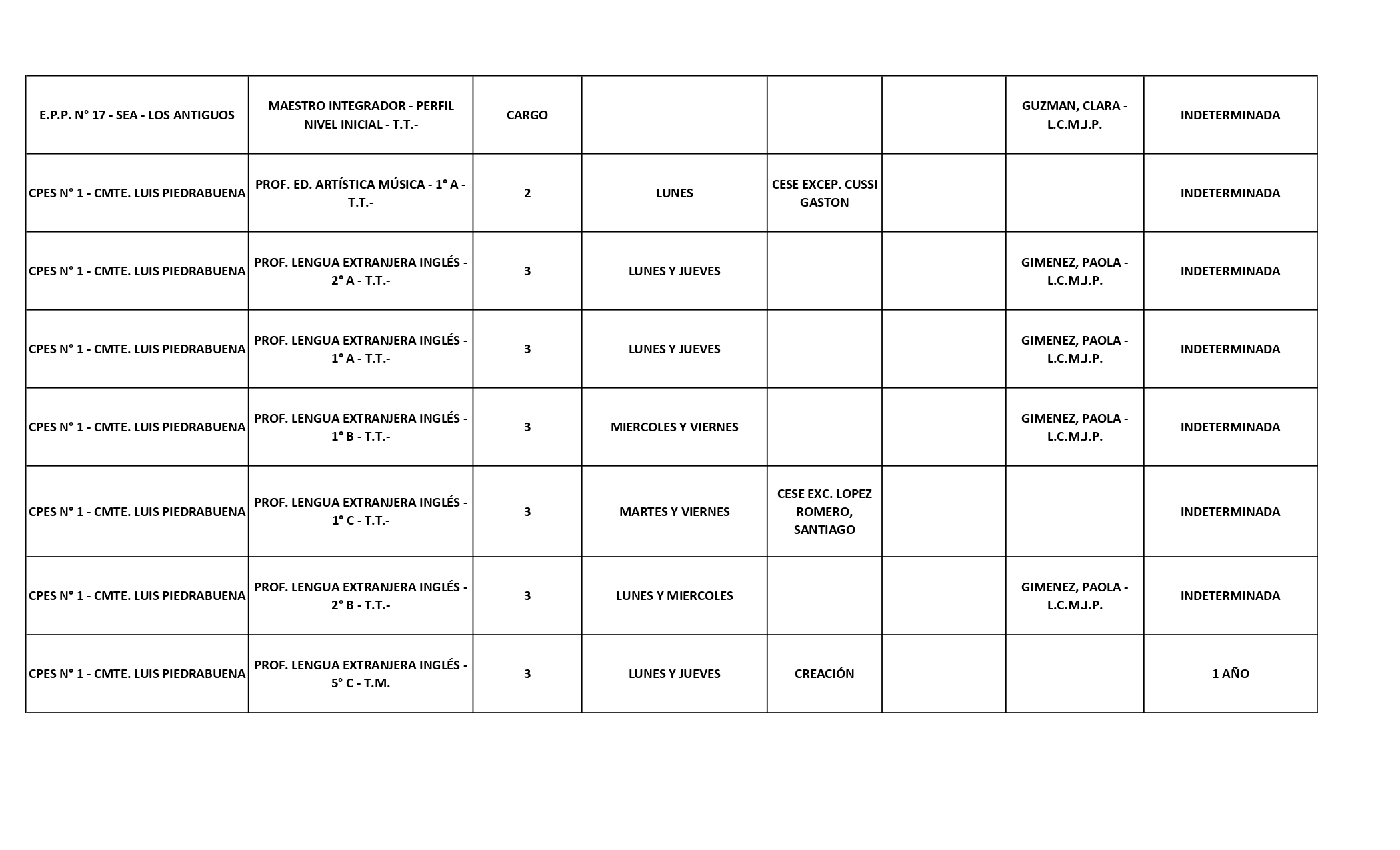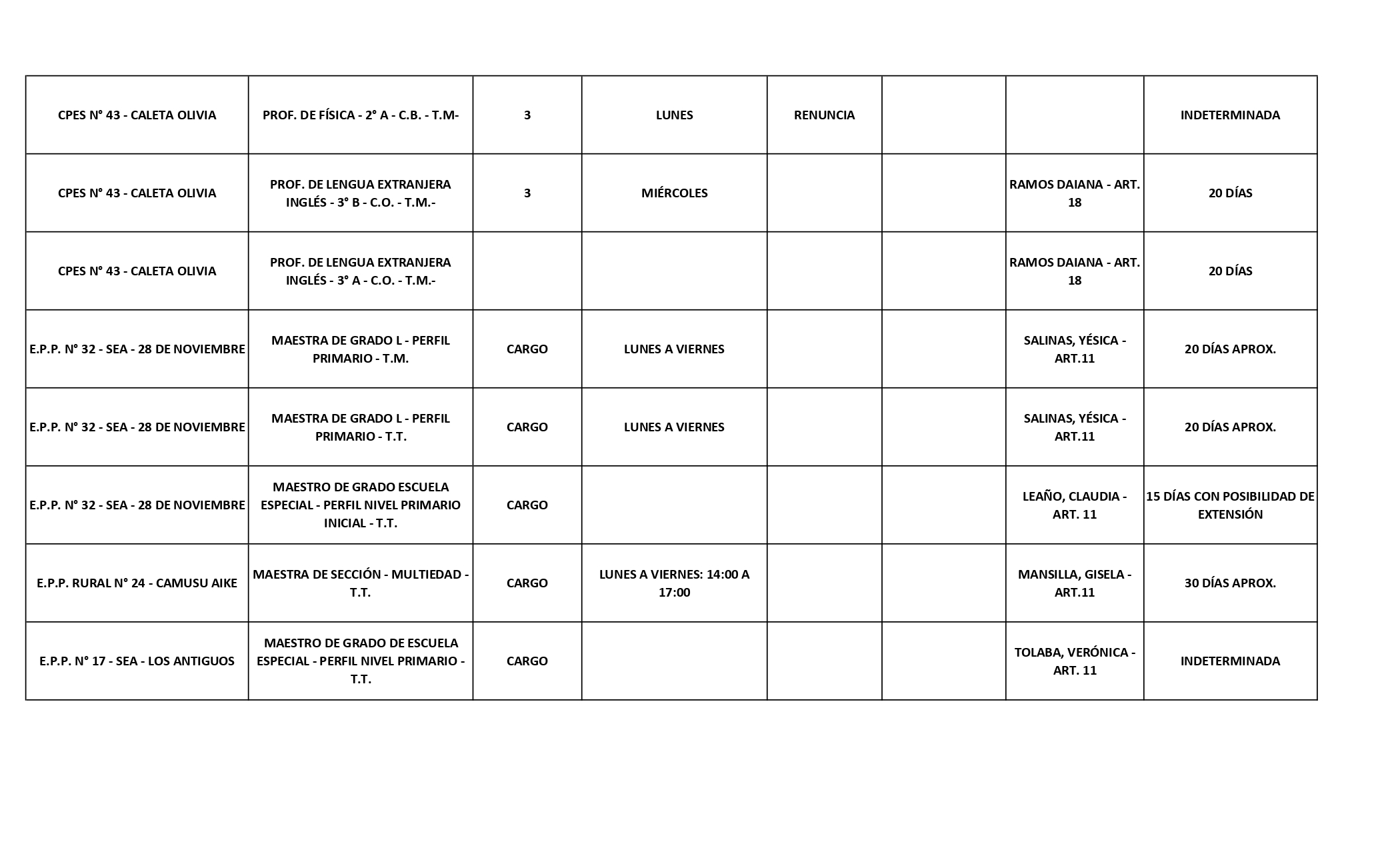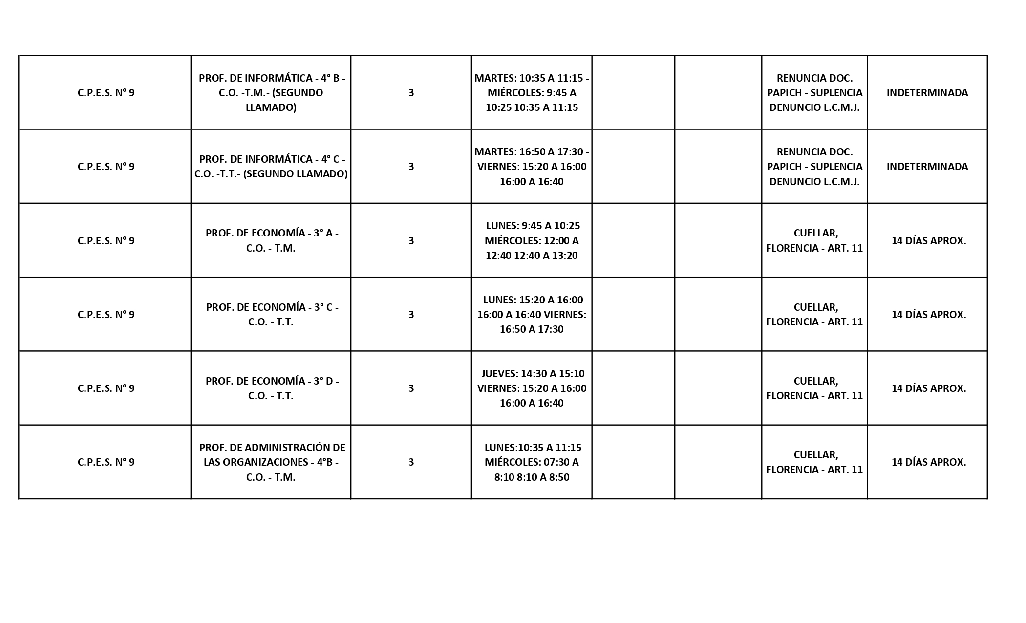 15/04/2026 | El Consejo Provincial de Educación, a través de las Comisiones de Ofrecimientos, informa que se encuentran disponibles los listados para acceder a los cargos y horas cátedra en establecimientos de diferentes localidades. Los mismos se realizarán de manera presencial.