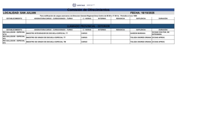 16/10/2025 | El Consejo Provincial de Educación, a través de las Comisiones de Ofrecimientos, informa que se encuentran disponibles los listados para acceder a los cargos y horas cátedra en establecimientos de diferentes localidades. Los mismos se realizarán de manera presencial.