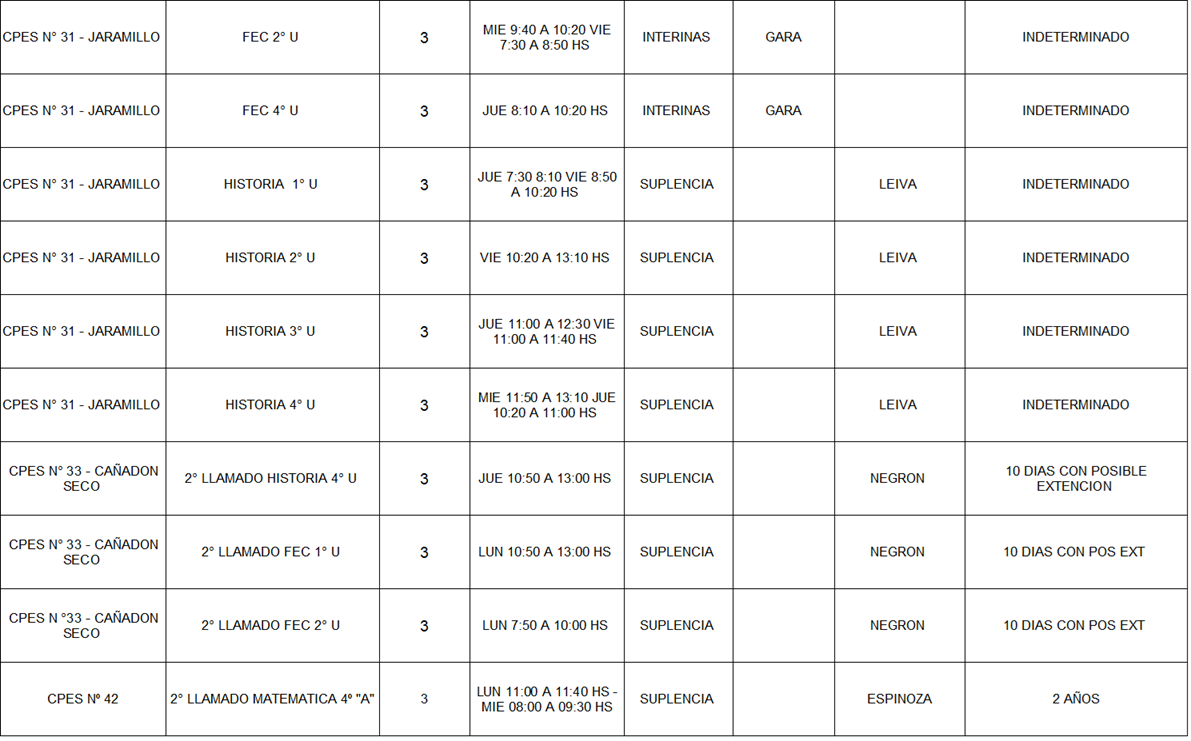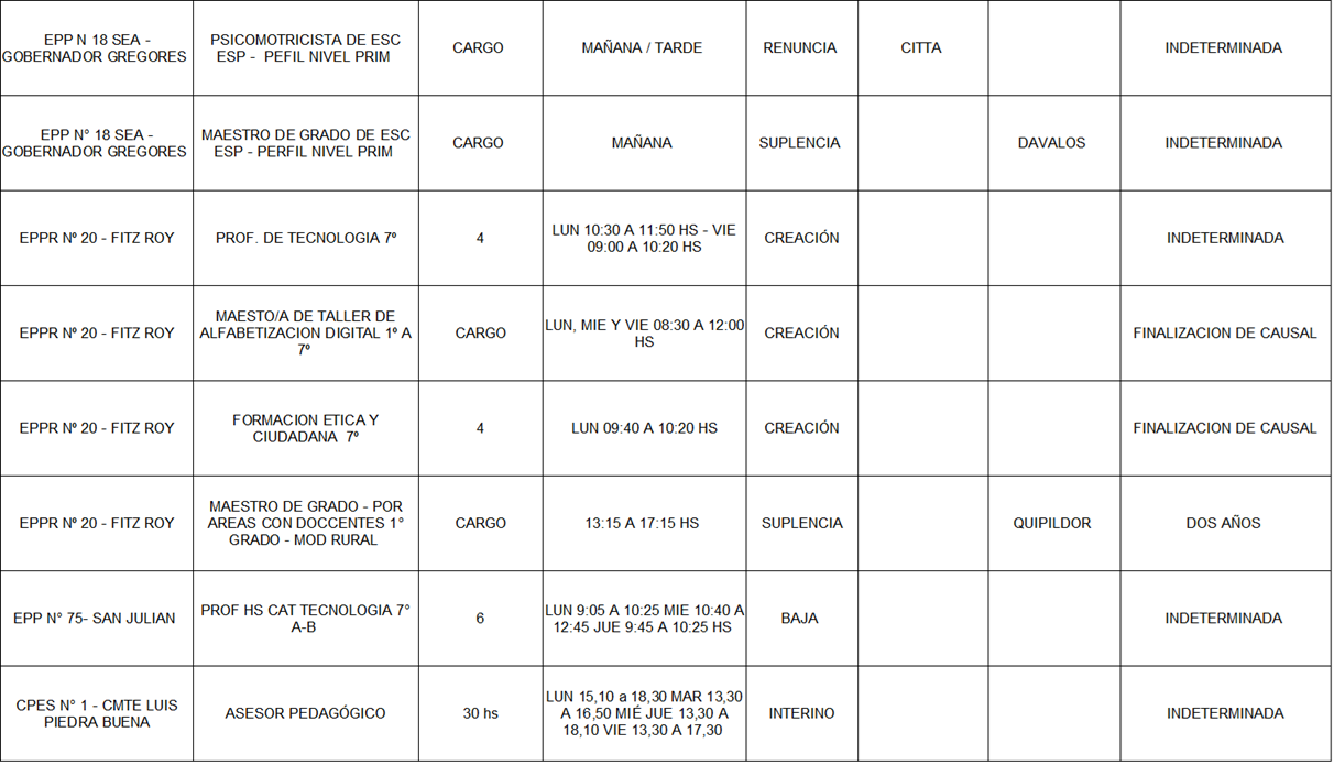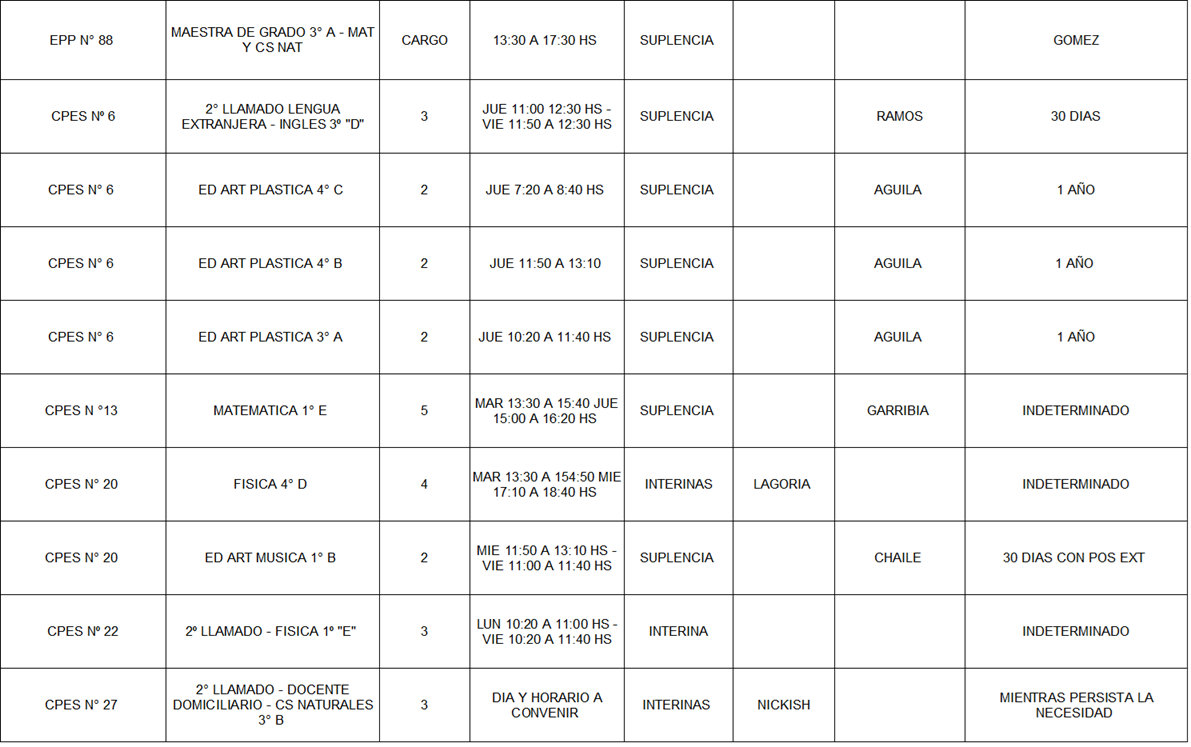 18/03/2026 | El Consejo Provincial de Educación, a través de las Comisiones de Ofrecimientos, informa que se encuentran disponibles los listados para acceder a los cargos y horas cátedra en establecimientos de diferentes localidades. Los mismos se realizarán de manera presencial.