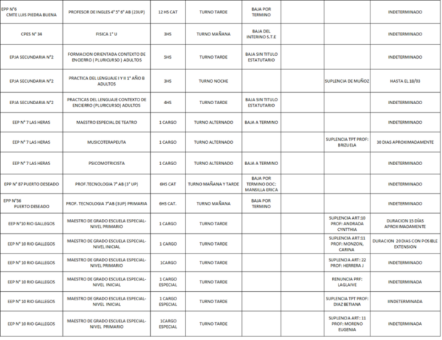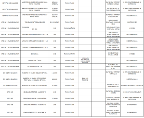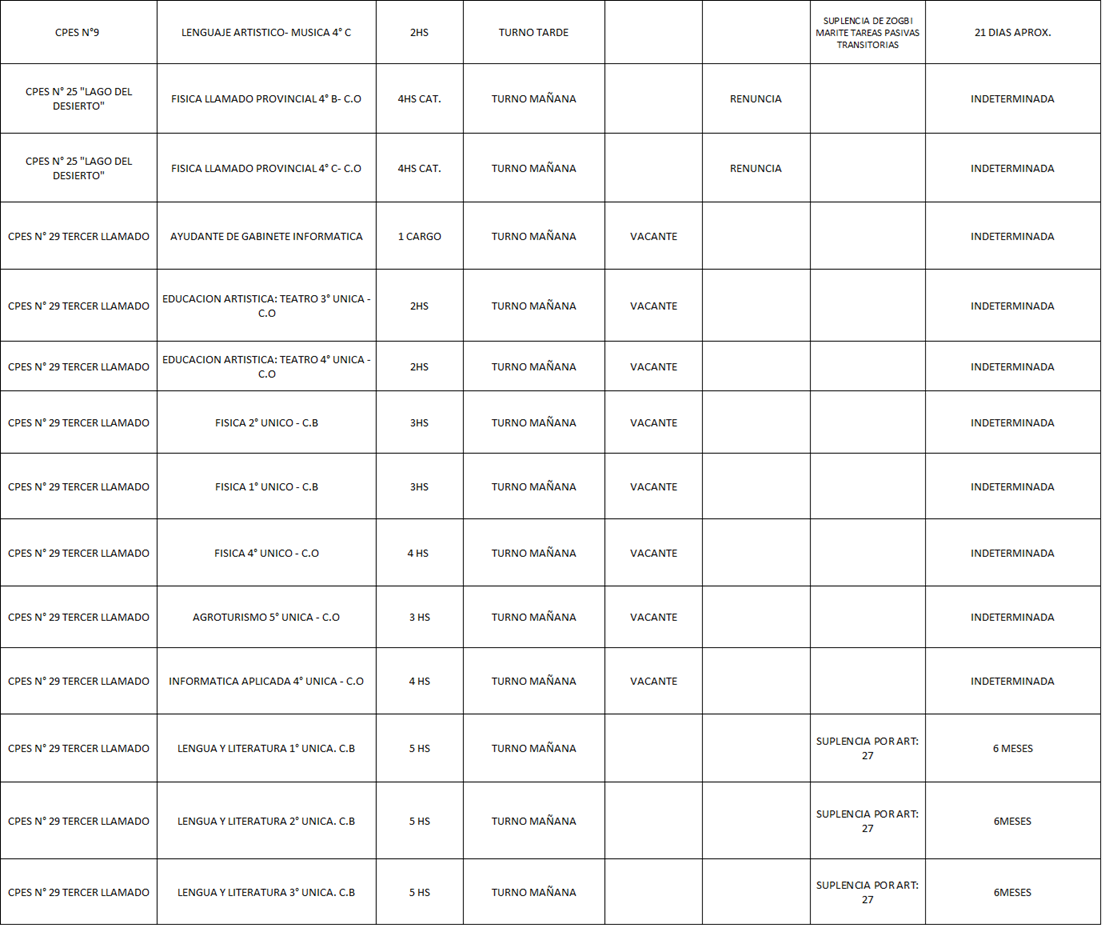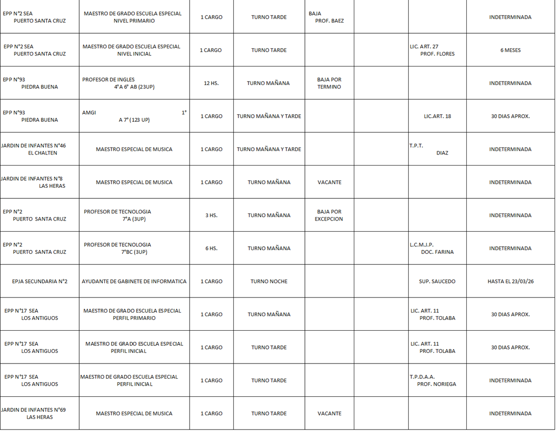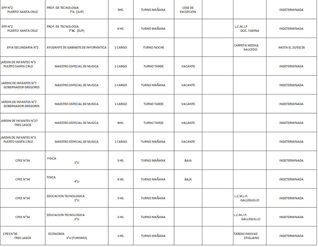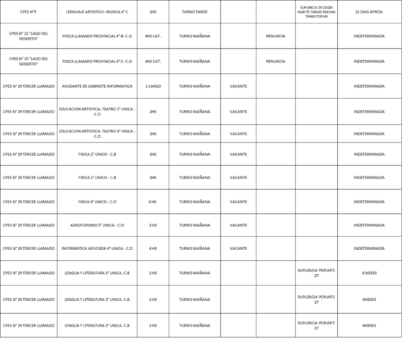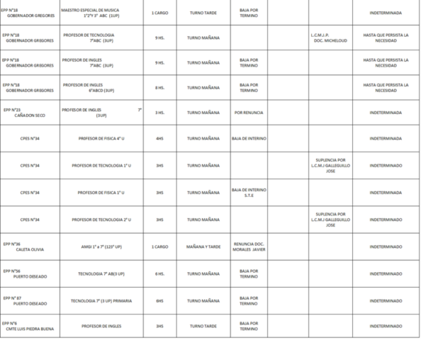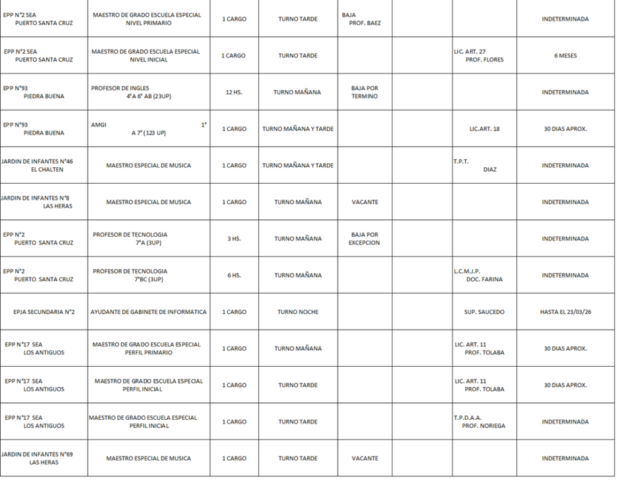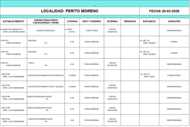 20/03/2026 | El Consejo Provincial de Educación, a través de las Comisiones de Ofrecimientos, informa que se encuentran disponibles los listados para acceder a los cargos y horas cátedra en establecimientos de diferentes localidades. Los mismos se realizarán de manera presencial.