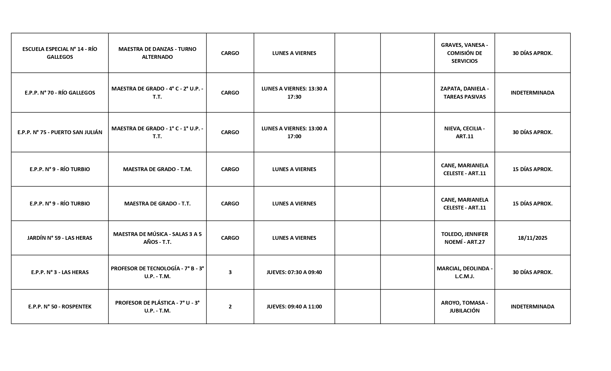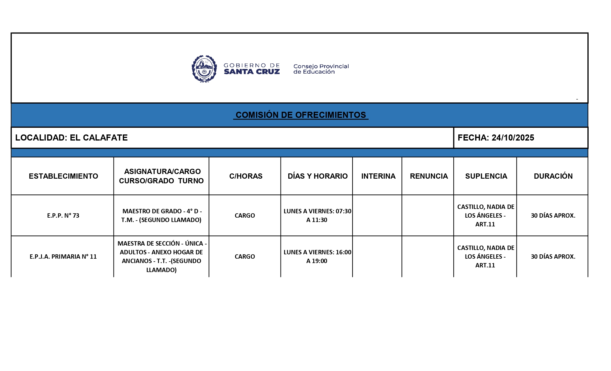 24/10/2025 | El Consejo Provincial de Educación, a través de las Comisiones de Ofrecimientos, informa que se encuentran disponibles los listados para acceder a los cargos y horas cátedra en establecimientos de diferentes localidades. Los mismos se realizarán de manera presencial.