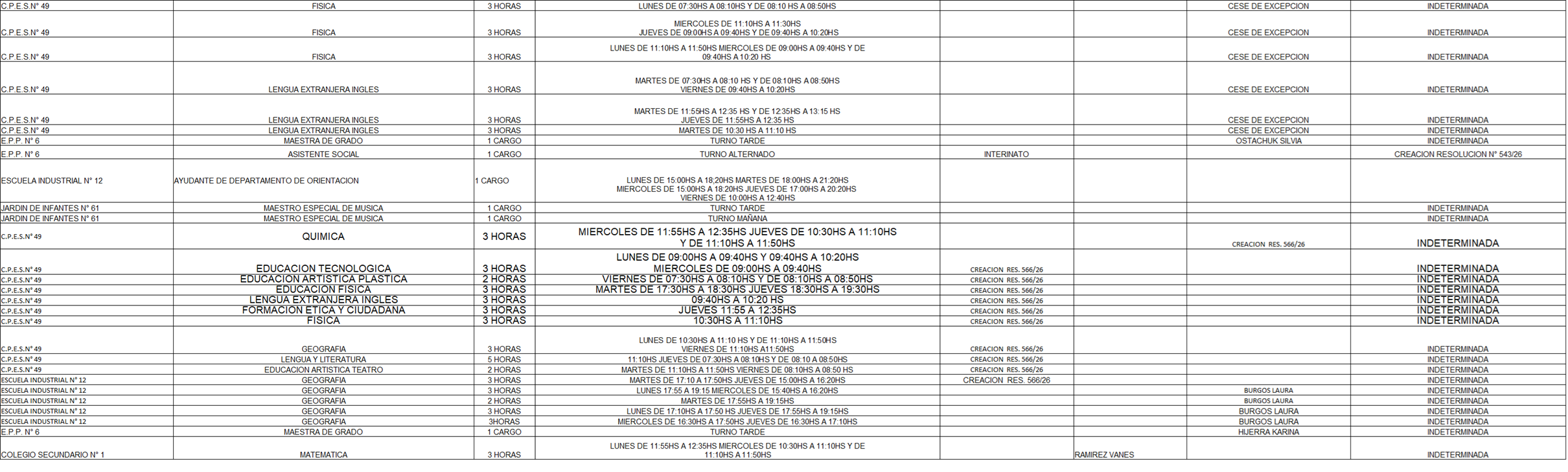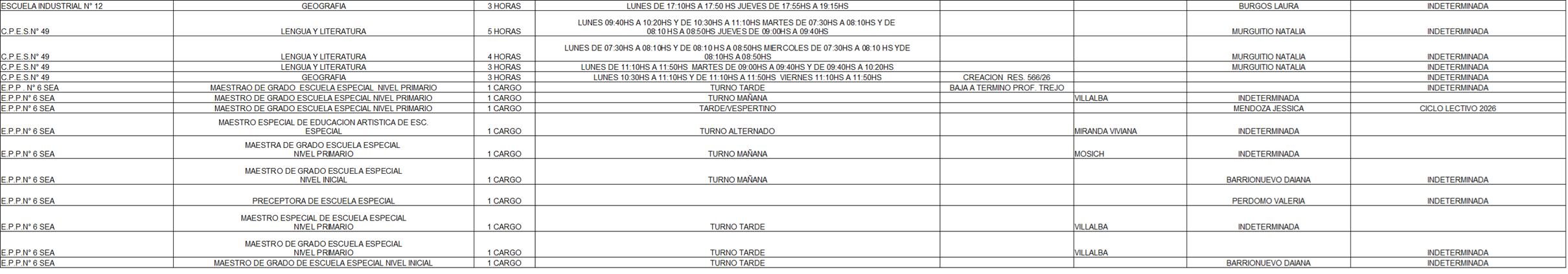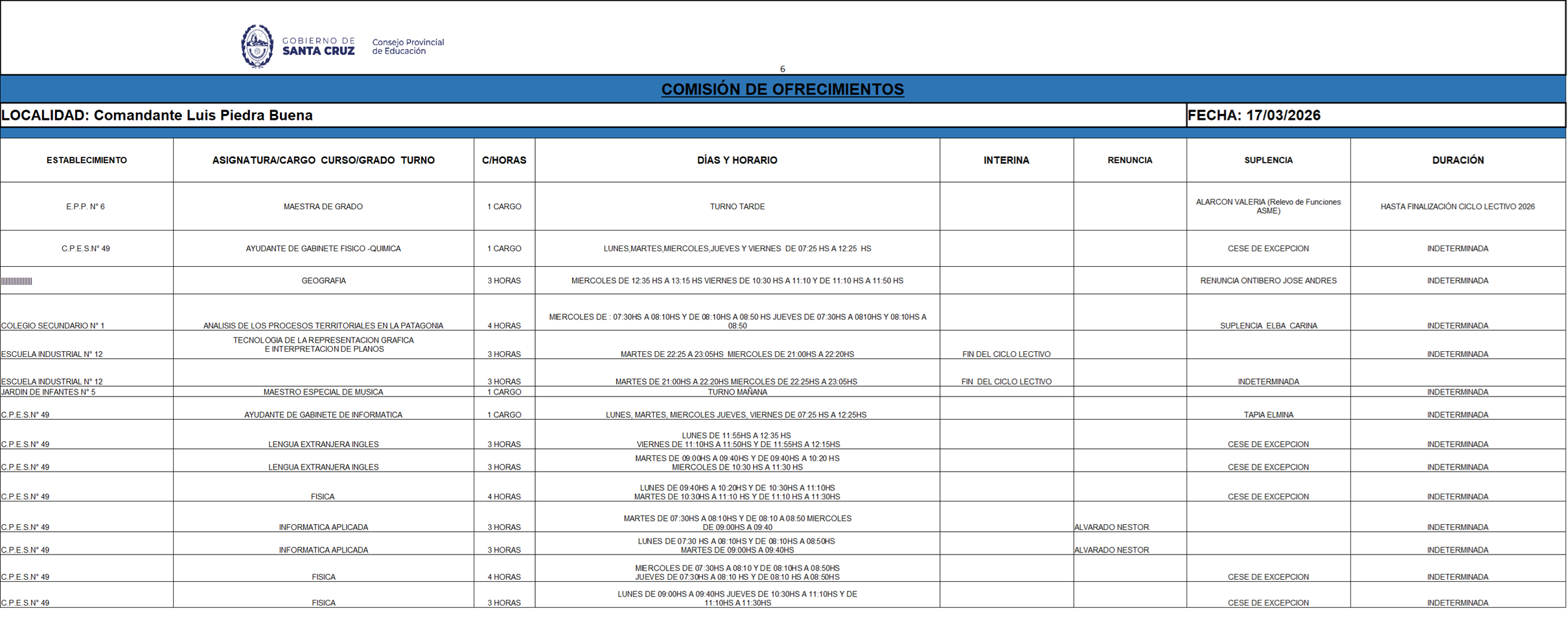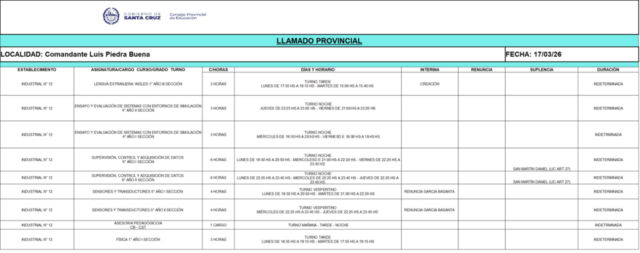 25/03/2026 | El Consejo Provincial de Educación, a través de las Comisiones de Ofrecimientos, informa que se encuentran disponibles los listados para acceder a los cargos y horas cátedra en establecimientos de diferentes localidades. Los mismos se realizarán de manera presencial.