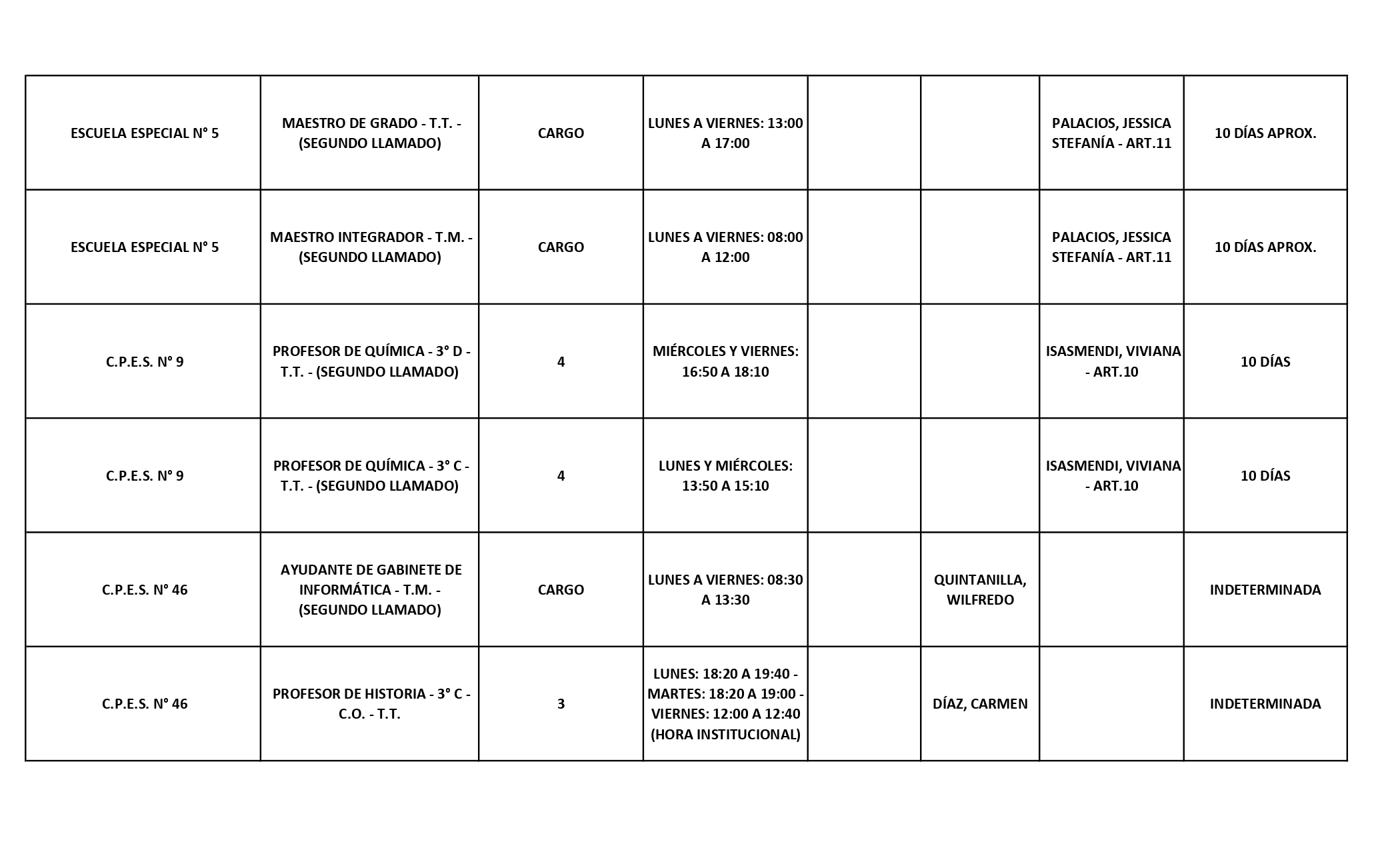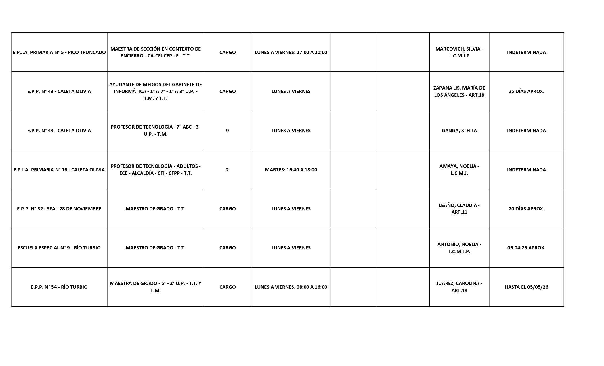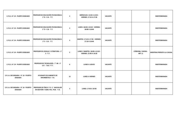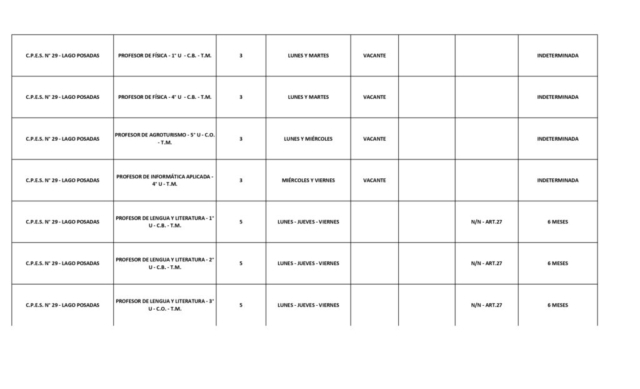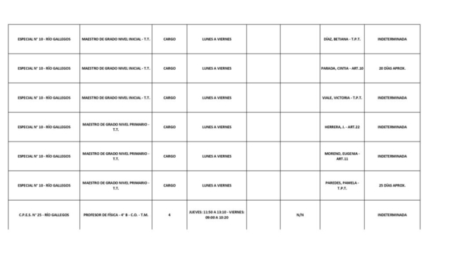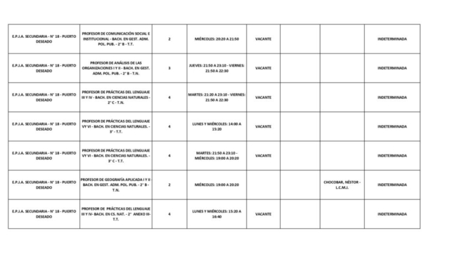 26/03/2026 | El Consejo Provincial de Educación, a través de las Comisiones de Ofrecimientos, informa que se encuentran disponibles los listados para acceder a los cargos y horas cátedra en establecimientos de diferentes localidades. Los mismos se realizarán de manera presencial.