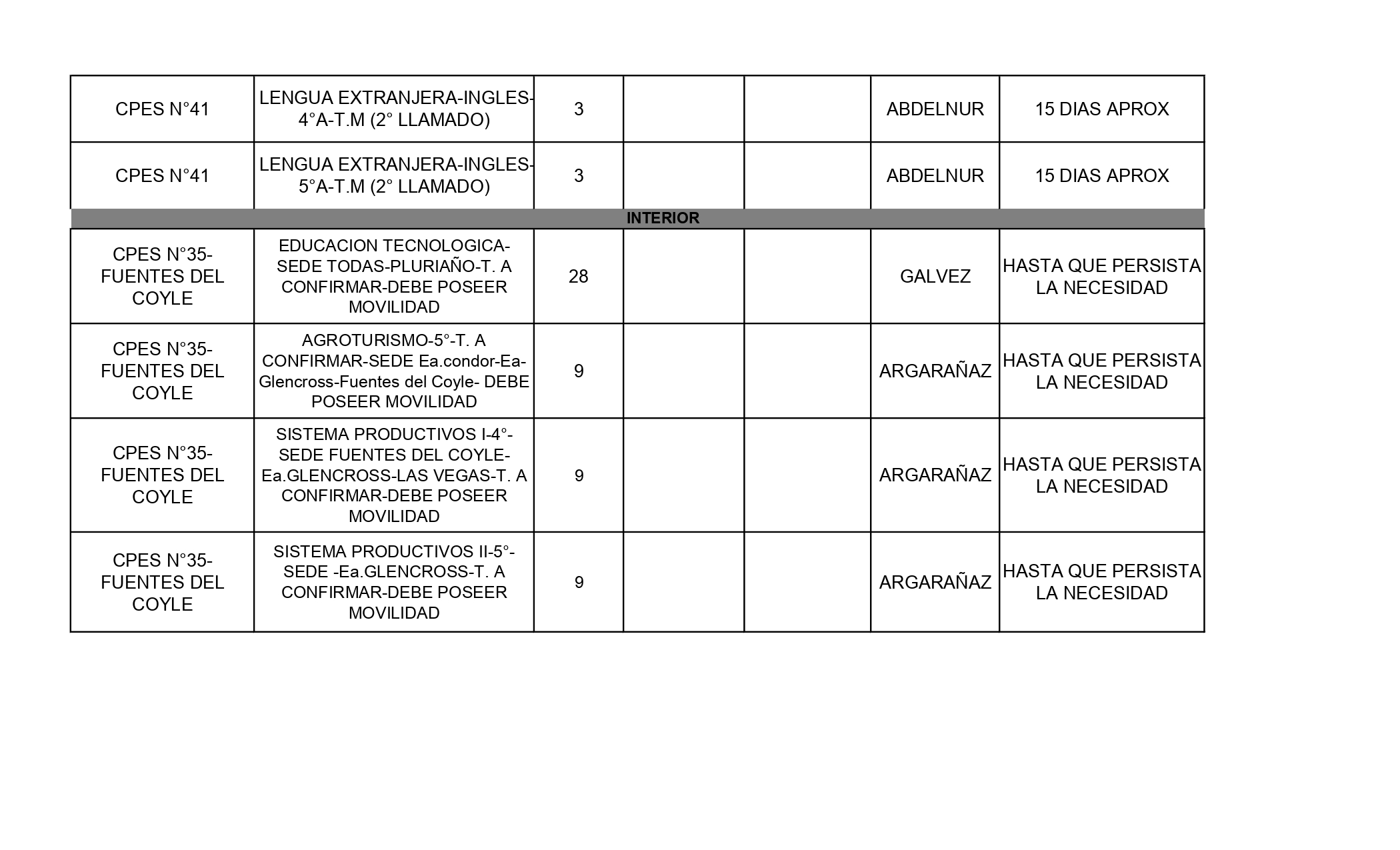 PARA ACCEDER A DICHOS CARGOS ES INDISPENSABLE ESTAR INSCRIPTO EN LA JUNTA DE CLASIFICACIÓN CORRESPONDIENTE.