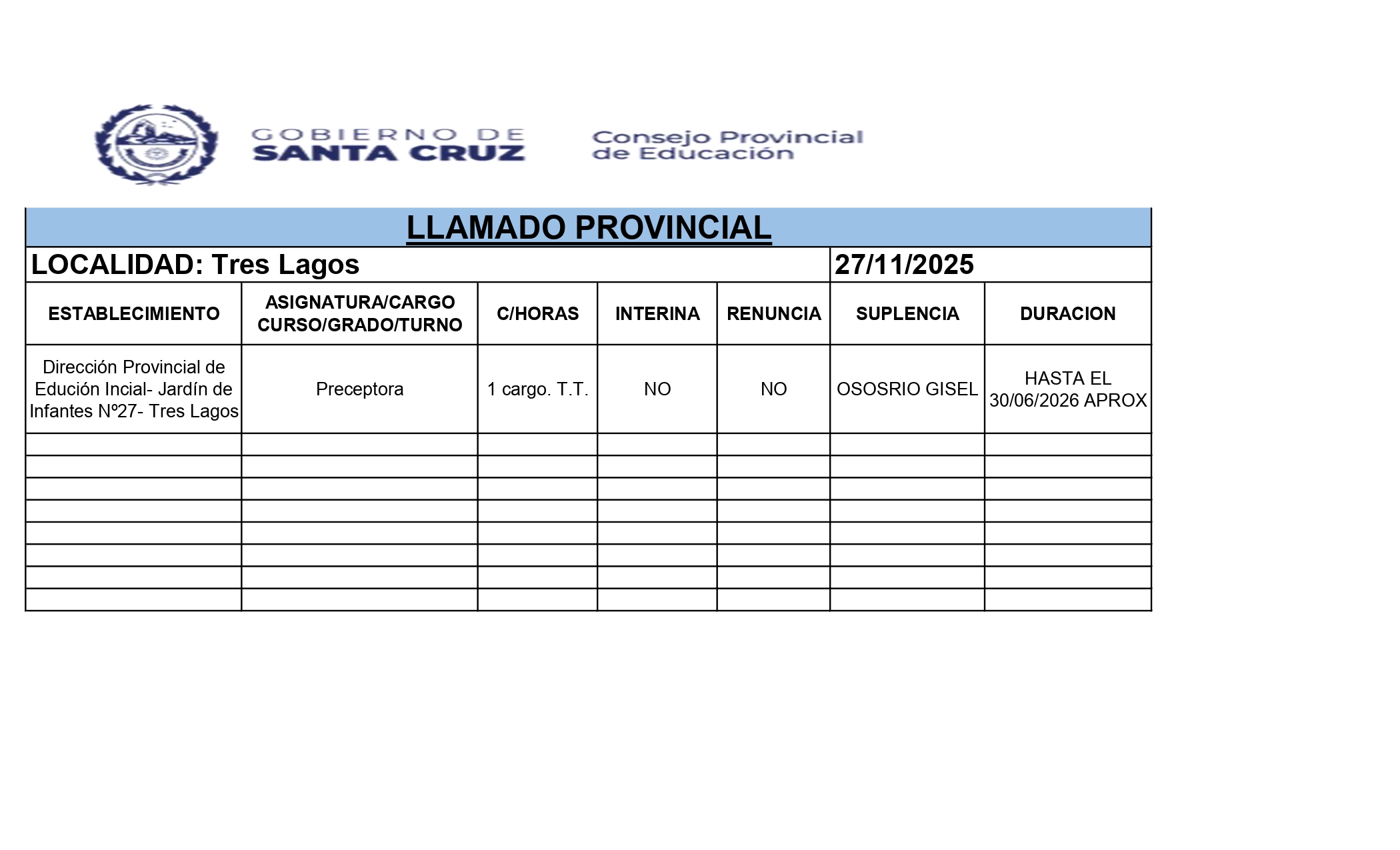 27/11/2025 | El Consejo Provincial de Educación, a través de las Comisiones de Ofrecimientos, informa que se encuentran disponibles los listados para acceder a los cargos y horas cátedra en establecimientos de diferentes localidades. Los mismos se realizarán de manera presencial.