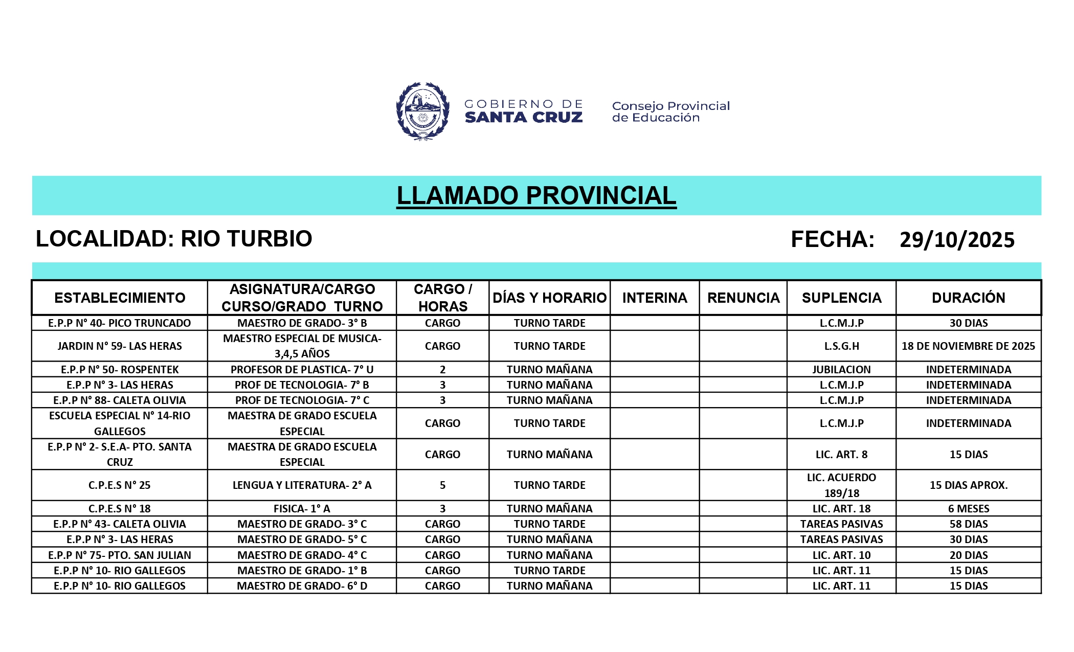 29/10/2025 | El Consejo Provincial de Educación, a través de las Comisiones de Ofrecimientos, informa que se encuentran disponibles los listados para acceder a los cargos y horas cátedra en establecimientos de diferentes localidades. Los mismos se realizarán de manera presencial.