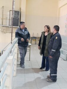 Durante la visita, dialogó con el personal encargado de realizar las tareas de infraestructura y abordó las necesidades prioritarias para garantizar mejores condiciones edilicias.