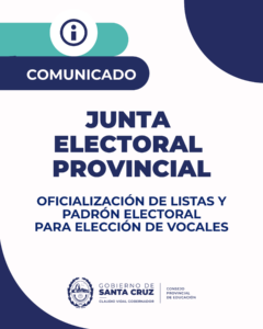 El Consejo Provincial de Educación informa que se encuentran disponibles el Padrón Electoral y las Listas de Candidatos que participarán en las elecciones destinadas a la renovación de dos cargos de Vocales, correspondientes a la Gestión Pública y a la Gestión Privada.