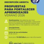 El Gobierno Provincial, a través del Consejo Provincial de Educación, informa que el día de la fecha es el último para inscribirse en las Propuestas para Fortalecer Aprendizajes – Verano 2026.