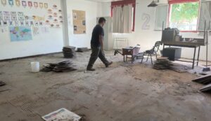 En este sentido, se recorrió la Escuela Provincial Primaria N° 72, donde se supervisaron las tareas de mantenimiento preventivo y correctivo que se ejecutan a partir del convenio entre el CPE y el municipio. En la institución se lleva adelante el recambio de piso en cinco aulas, además de otras intervenciones que se desarrollan en distintos edificios educativos de la localidad.