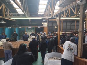 El encuentro culminó con una visita a la estancia “El Relincho”, donde los participantes conocieron en vivo el proceso productivo de la esquila, guiados por el personal de comparsa y el encargado del establecimiento. La jornada finalizó con un té y tortas fritas ofrecidos por los anfitriones.